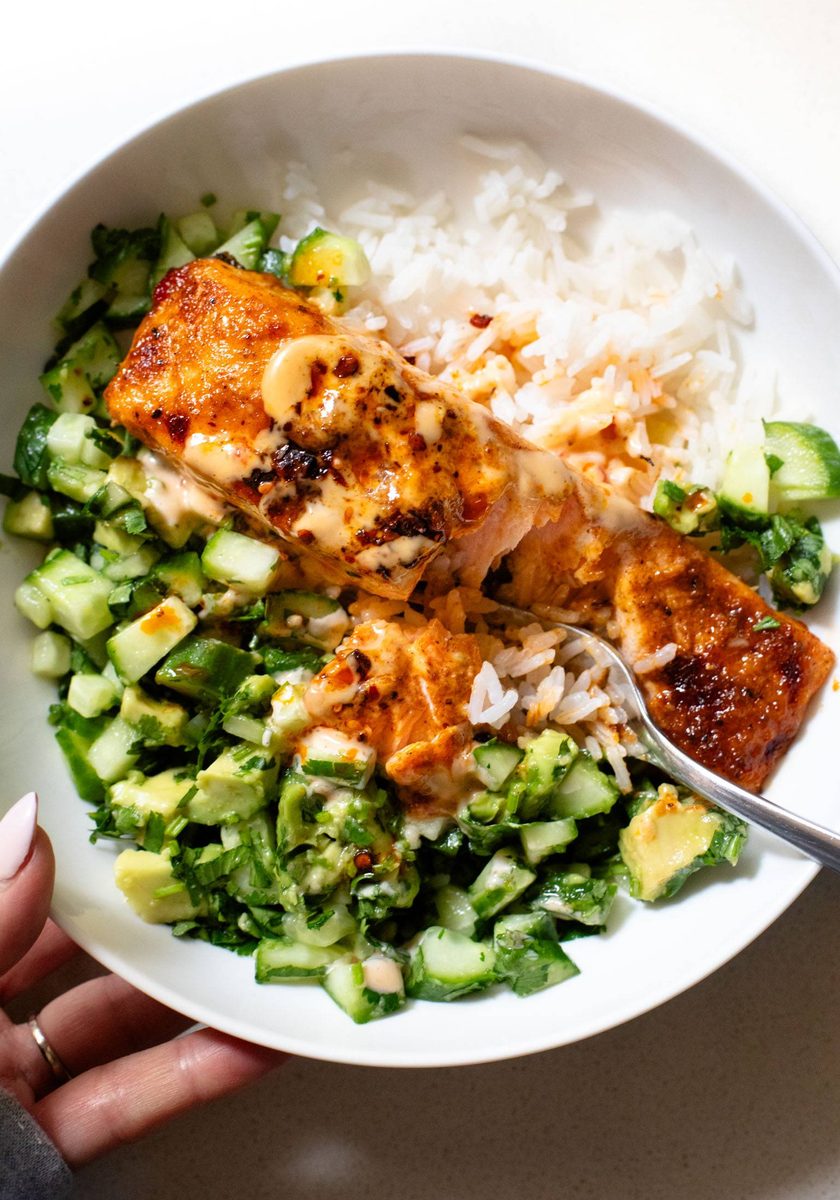 Easy, crowd-pleasing salmon recipes for skeptics and salmon lovers alike – rice bowls, burgers, tacos, and simple sheet pan and one-pot meals!